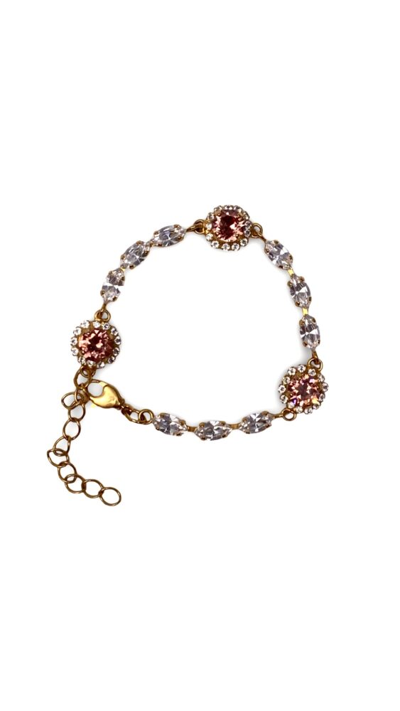 Super sweet bracelet with small flowers hand made in Athens, 24k gold plated brass, high quality Austrian crystals.
