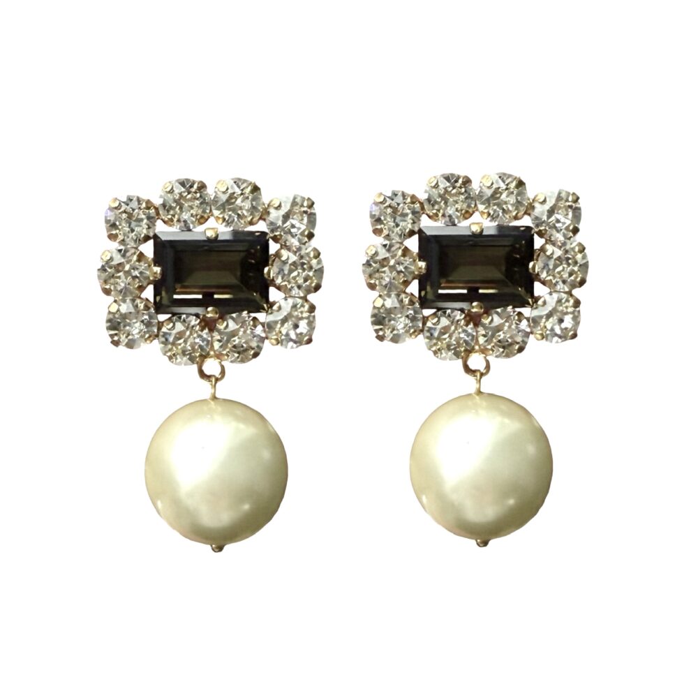 Stunning composition with Swarovskis and pearls. 24k gold plated brass and silver posts. Classic Caprice. Approx 4 cm long. Light weight.