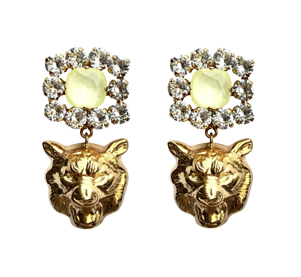 The perfect accessory for your summer tan. 24k gold plated brass, Swarovskis in soft yellow and clear crystals. Silver posts. Hand made in Athens, Greece. Approx. 5,5 cm long. Light weight.