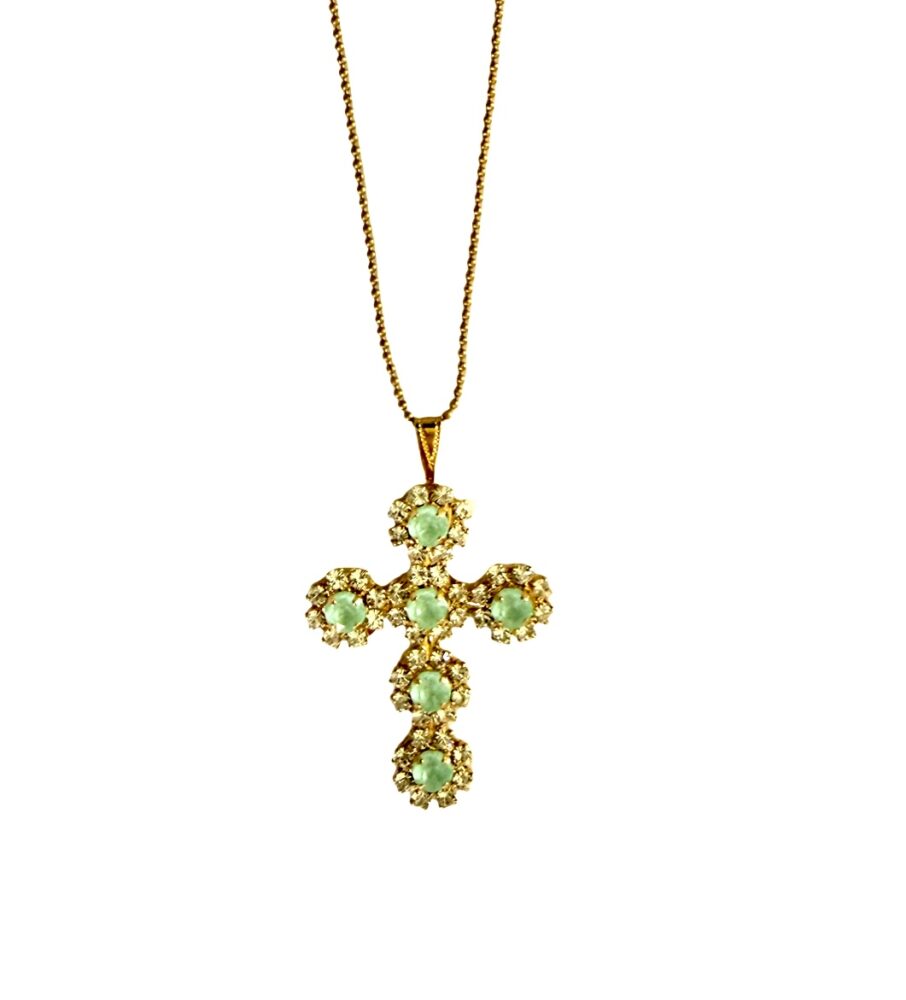 A stunning necklace with a 6 cm long cross pendant in sparkling Swarovskis. The photo does not capture the brilliance unfortunately. 24k gold plated brass cool necklace with tyny gold balls. You can decide the length. Standard is 60cm long.